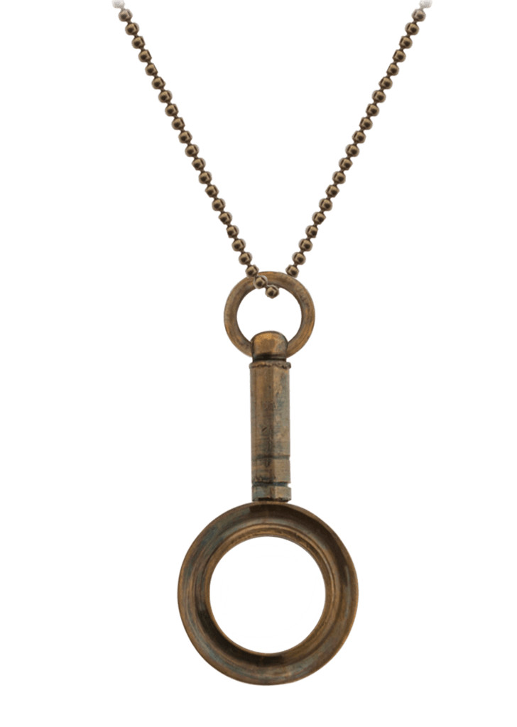 This Gold-Tone Mini Magnifying Glass Pendant Necklace blends form and function, with a mini magnifying glass pendant that measures 1½” L x ¾” W. The pendant hangs on an 18″ gold-tone bead chain, making it versatile for layering or wearing alone.